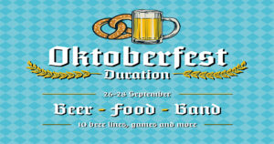 Duration’s Oktoberfest Beer Festival – Bringing the real Oktoberfest to Norfolk – with 15 Beers, Cider + Cocktails, Live Bands, Great Local Street Food, Games & DJ’s.